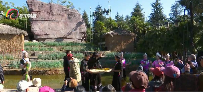 云南民族村哈尼族文化展示人员 白杨:“类似于汉族的春节,非常隆重。节日期间有竹筒舞迎宾、竹竿阵,还有歌舞展演,包剪锤赢了,可以赢得我们哈尼族的彩蛋。吃的有我们哈尼族特色烧豆腐、米干、竹筒饭,让所有游客感受我们哈尼族过年的气氛。”
