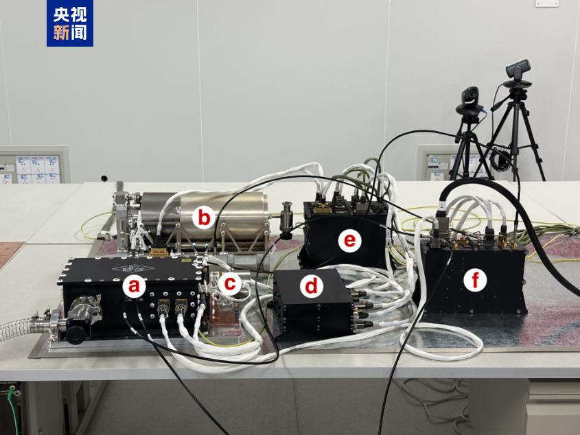 VLBI专用载荷设备由上海天文台牵头负责,联合国内多家航天电子技术单位共同完成研制。主要设备包括X波段低温接收机及制冷机控制单元(如下图a,c,d)、被动氢原子钟(b)、变频和数据采集后端(f)、VLBI馈源、波束波段及电缆组件等。鹊桥二号中继星于2024年3月20日发射,并成功进入椭圆环月轨道,目前运行于近月点300公里、远月点16万公里的稳定轨道。VLBI设备经过单机测试,各项指标满足要求。
