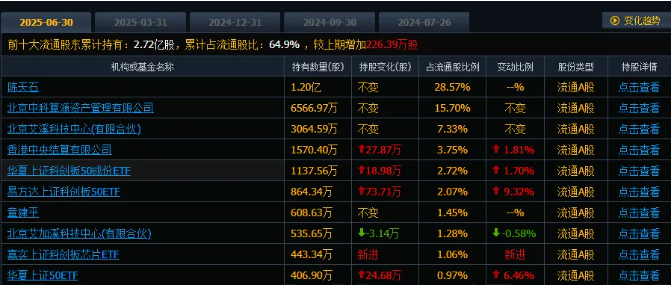 截至8月26日收盘,寒武纪总市值达5560亿元,根据十大流通股东信息显示,陈天石直接持有寒武纪28.57%股份,对应市值约1588.56亿元。