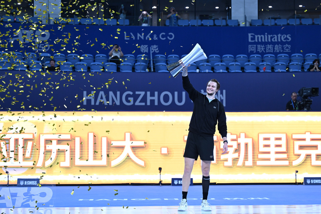 9月23日,在ATP250杭州网球公开赛决赛中,赛会3号种子、哈萨克斯坦选手布勃里克以7比6、7比6战胜资格赛选手、法国球员鲁瓦耶夺得冠军。