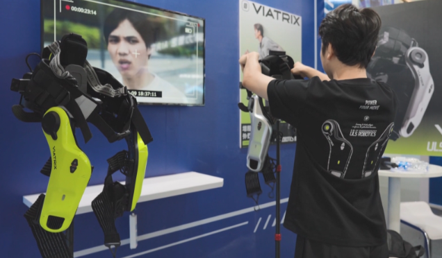 在这家来自上海的科技公司展位,穿上这套增程动力外骨骼机器人,普通人也能有效减轻负重,让登山、骑行和长时间步行变得格外轻松。
