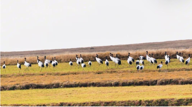 11月13日,云南大山包黑颈鹤国家级自然保护区管护局工作人员开展例行巡护时,在保护区内观察到260余只黑颈鹤正在悠闲觅食,标志着越冬黑颈鹤“先头部队”已顺利抵达大山包。